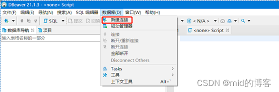 2.7、配置完成后选择“数据库”-“新建连接”