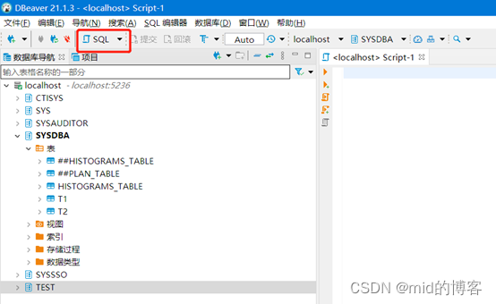 2.8、点击“SQL”,右边界面就会打开一个SQL编辑器,可以执行SQL语句