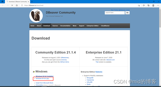 下载地址:https://dbeaver.io/download/ 或者点击这里下载
