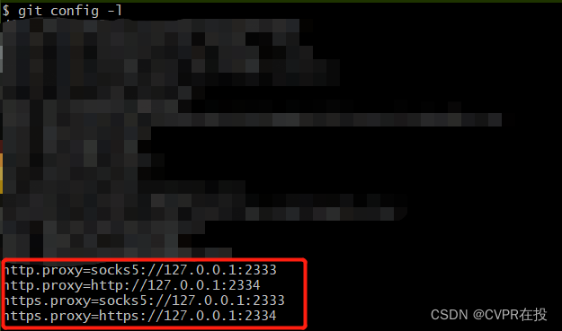 git config --global http.proxy 'http://127.0.0.1:http端口号' git config --global https.proxy 'https://127.0.0.1:https端口号'