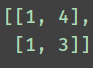 注意:这里1前面有两个中括号(N维矩阵就是N个中括号)。结果为: