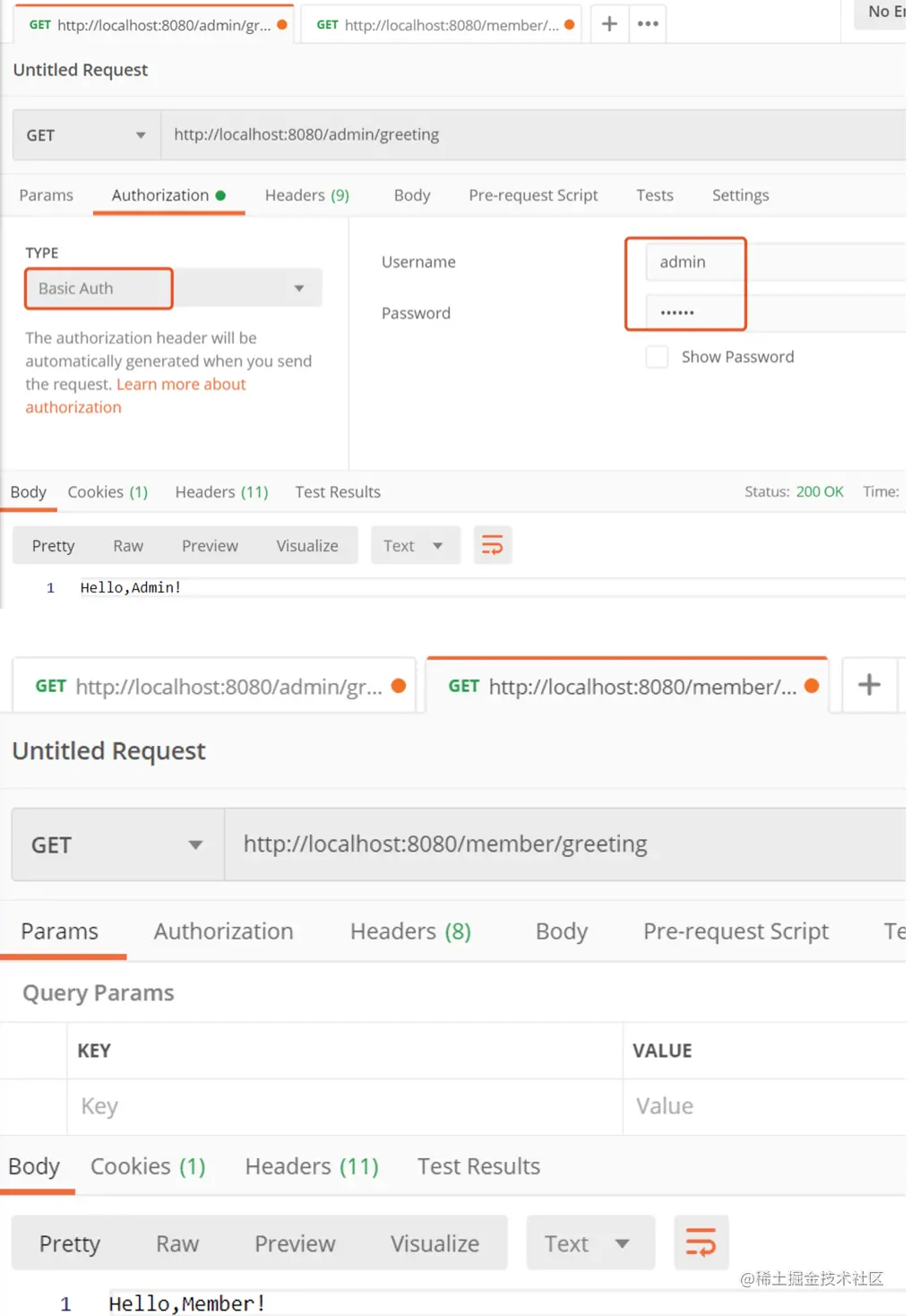 5.2 admin身份的权限,可以访问admin与member相关的接口: