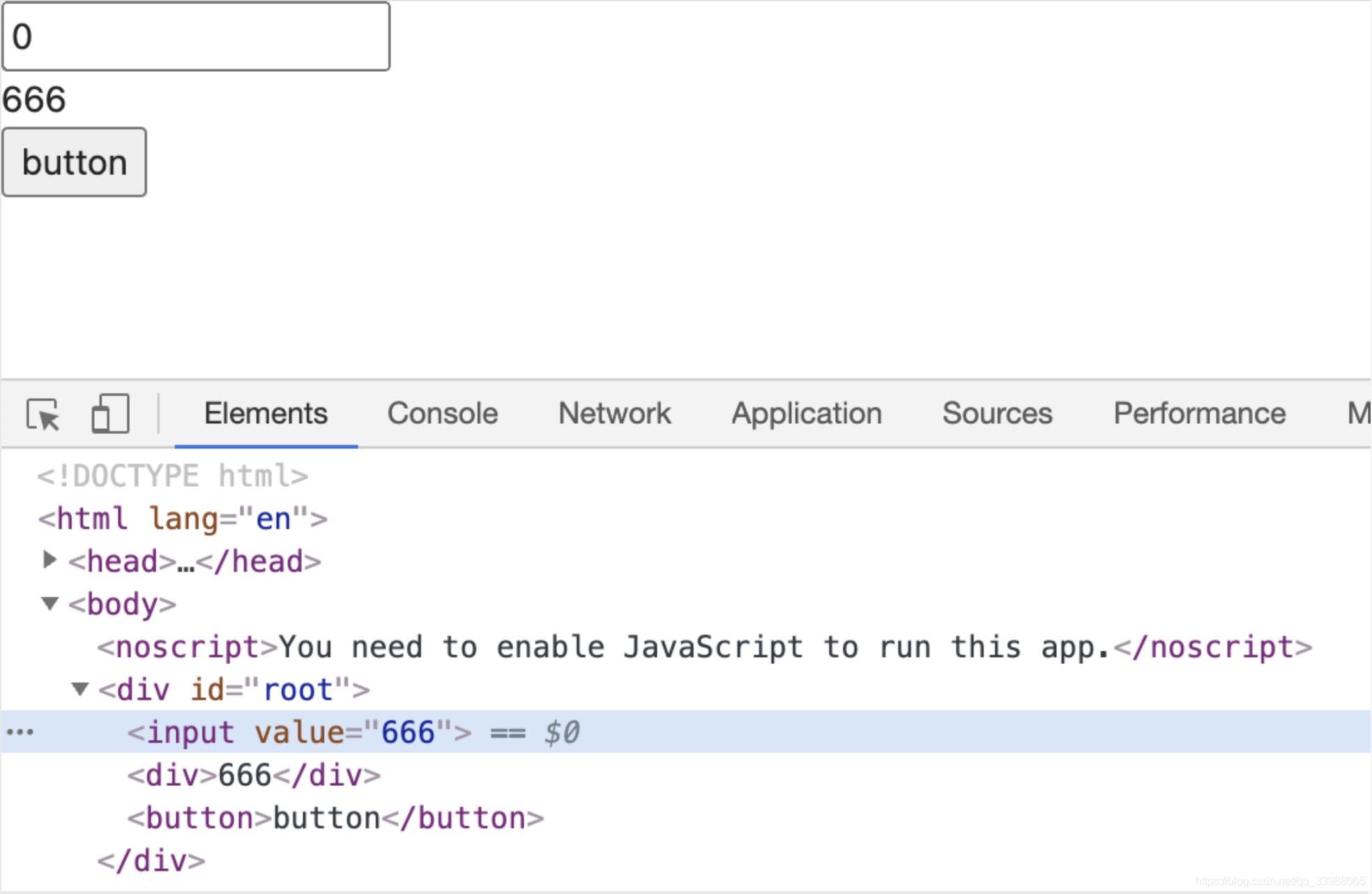 页面展示状态和源码状态不一致,HTML中的属性已经修改为了 666,但是页面依然展示的 0,估计是 react 在实现 input 时留下的一个隐藏 bug。