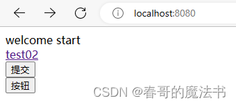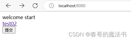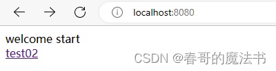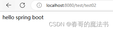 重新启动项目, 在浏览器地址栏输入URL : http://localhost:8080/test/test02