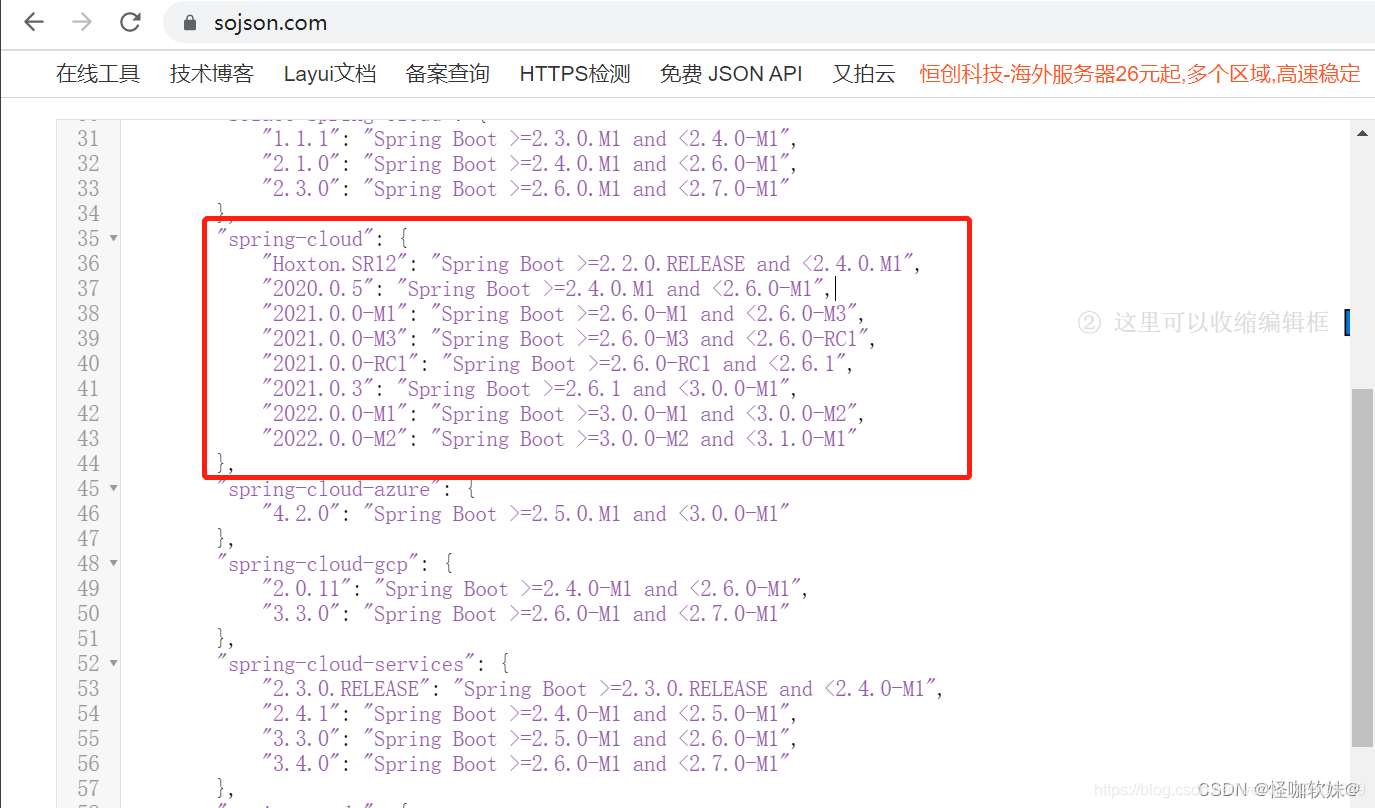 这个是官网提供的,会给我们返回更详细的版本对应关系,如果我们不知道版本怎么选择,可以看这个网站 ,网站返回的是json,我们需要格式化一下。