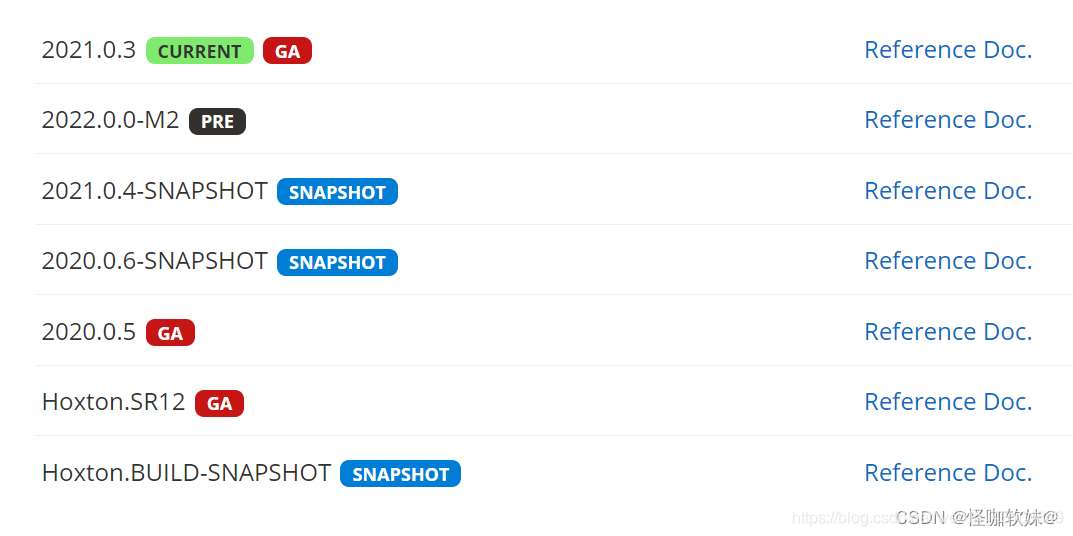 GA:General Availability: 正式发布的版本,官方推荐使用此版本。在国外都是用GA来说明release版本的。CURRENT:当前推荐的版本PRE:里程碑版/预览版本SHAPSHOT:快照