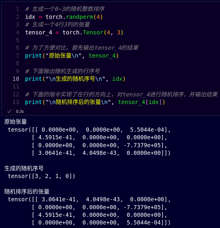 print("\n随机排序后的张量\n", tensor_4[idx])