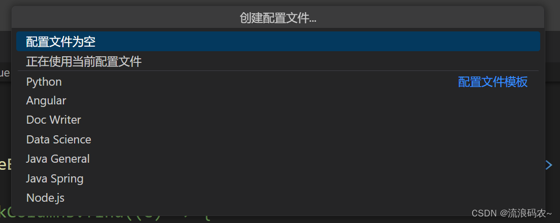 创建第二个配置文件时可能报错A filesystem provider for the scheme ‘userdataprofileexport’ is already registered.原因不明,需要重新启动一下vscode。