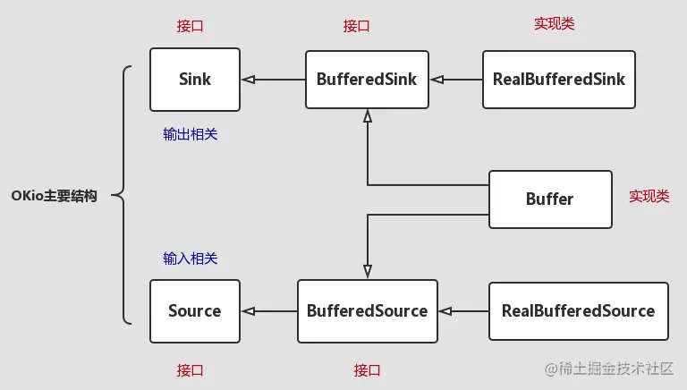 Okio 的设计思想是将数据的读写操作封装为一个统一的接口,即 Source 和 Sink,其中 输入为Source,输出为Sink 。
