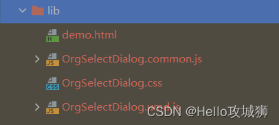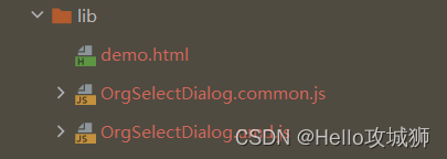 看上图,lib文件夹中OrgSelectDialog.umd.js就是打包好的组件或者使用压缩后的OrgSelectDialog.umd.min.js;除了引入js外,还需要引入OrgSelectDialog.css,显得比较麻烦,在vue.config.js里面配置一下就可以把样式一起打包到js中,如下: