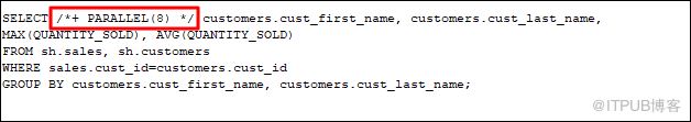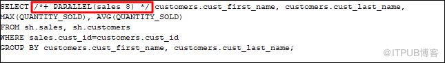 1)只写PARALLEL(sales8)则customers部分没有并行,从而影响整体并行效率。