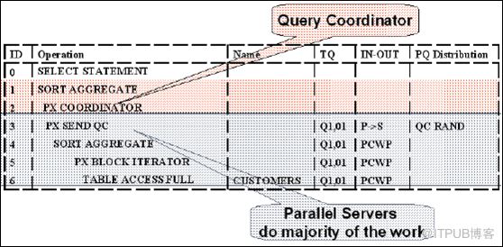 1)TQ(Table queue) 的编号代表了并行执行计划中, 数据分发的顺序。