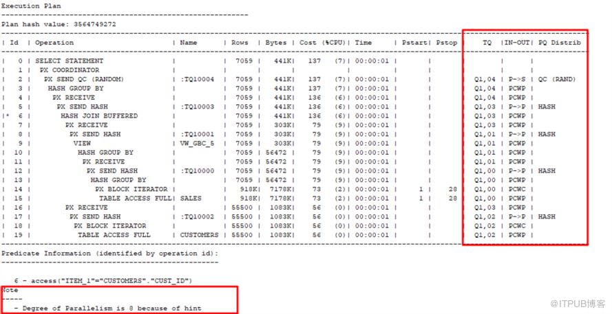 2)建议并行写成PARALLEL(8),不要带别名,则sales和customers都为DOP=8的并行。对于并行DML:
