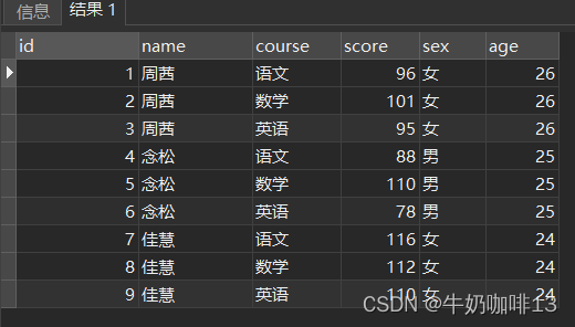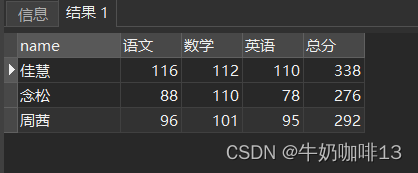 group by "name";2.2、实现将上图内容转为行——case when函数