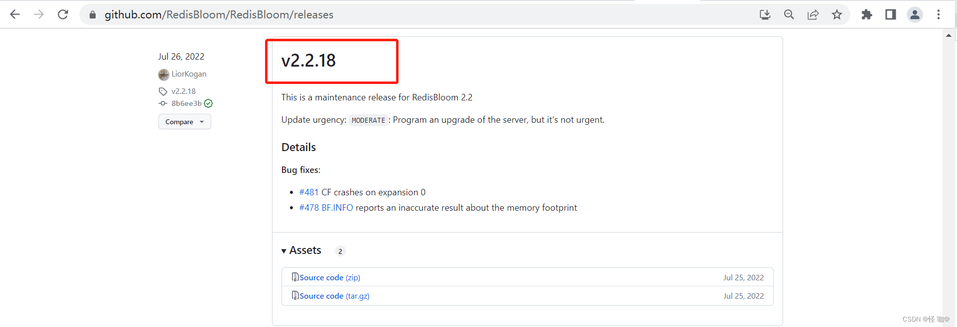 # 下载 wget https://codeload.github.com/RedisBloom/RedisBloom/tar.gz/refs/tags/v2.2.18 # 解压 tar -zxvf v2.2.18