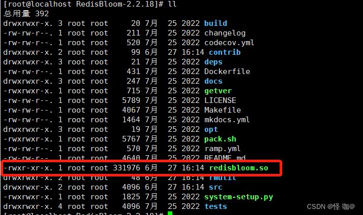# 进入到解压目录 cd RedisBloom-2.2.18/ # 编译 make
