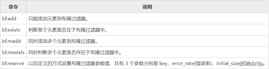 - 数据结构: RedisBloom相当于为了实现过滤器而新增了一个数据结构,而Redisson是基于redis原有的bitmap位图数据结构来通过硬编码实现的过滤器。