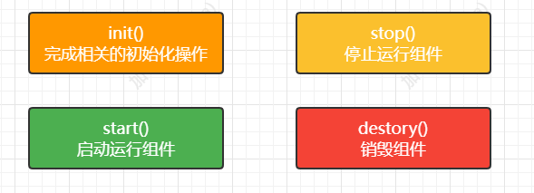 可以看到和对应的事件关联起来了。init方法的逻辑弄清楚后,你会发现start方法,stop方法,destory方法的处理逻辑都是差不多的,可自行观看。