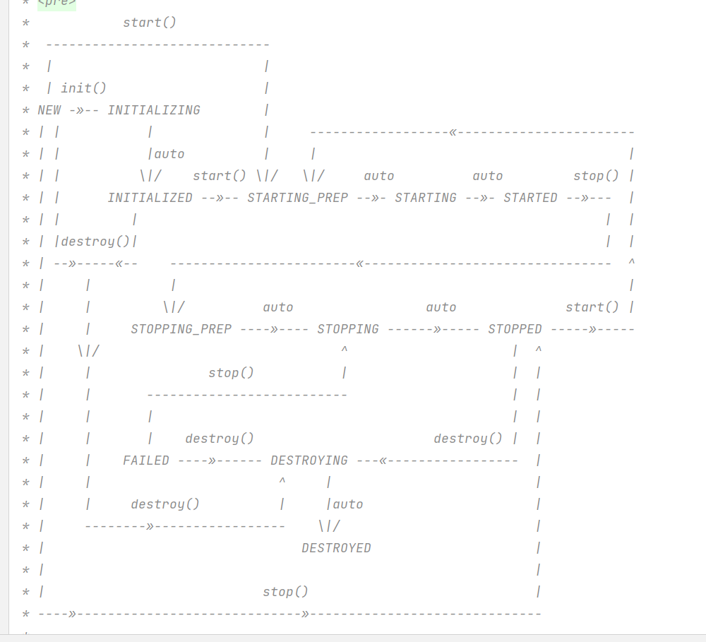 在声明的方法执行的过程中会涉及到对应的状态的转换,在LifeCycle接口的头部文档中很清楚的说了。