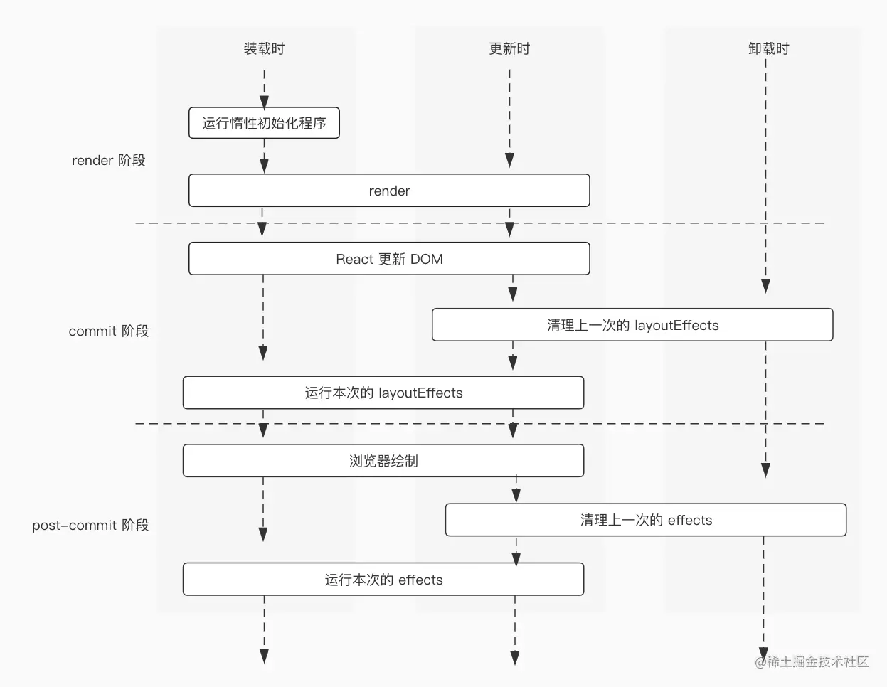 函数组件生命周期内 hooks 的调用顺序如下图