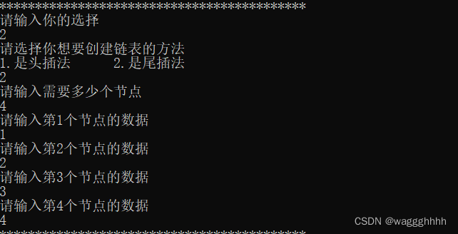 测试样例:创建4个节点 数据分别为1、2、3、4 其余测试基于以上4个节点
