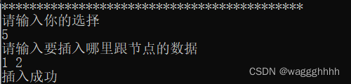 void ListInsert_L(LinkList& L, int i, int e) { int j = 0; Lnode* p = L; while (p && j < i - 1)//即找到i-1的位置 { p = p->next; j++; } if (!p || j > i - 1) { printf("i值错误,i小于1或大于表长\n"); return; } Lnode* s = new Lnode; s->data = e; s->next = NULL; s->next = p->next; p->next = s;//注意两行不能调换位置,否则s指向自己,错误 printf("插入成功\n"); }