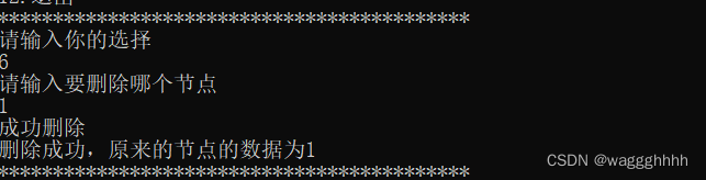 void ListDelete(LinkList& L, int i, int& e) { Lnode* p = L,*q; int j = 0; while (p->next && j < i - 1)//找到i-1的节点 { p = p->next; j++; } if (!(p->next) || j > i - 1) { printf("未找到要删除的节点\n"); return; } q = p->next; e = q->data; p->next = q->next; delete q;//释放空间 printf("成功删除\n"); }