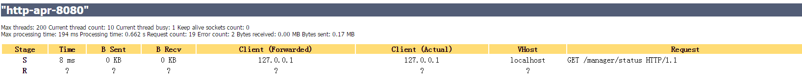 点击server status 输入用户名密码可以查看服务器的状态