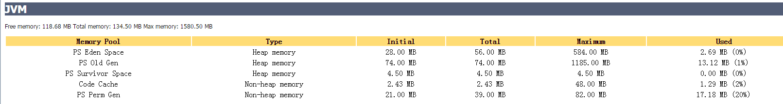 2、JVM的信息 (默认的这些值都很低,我们可以配置)