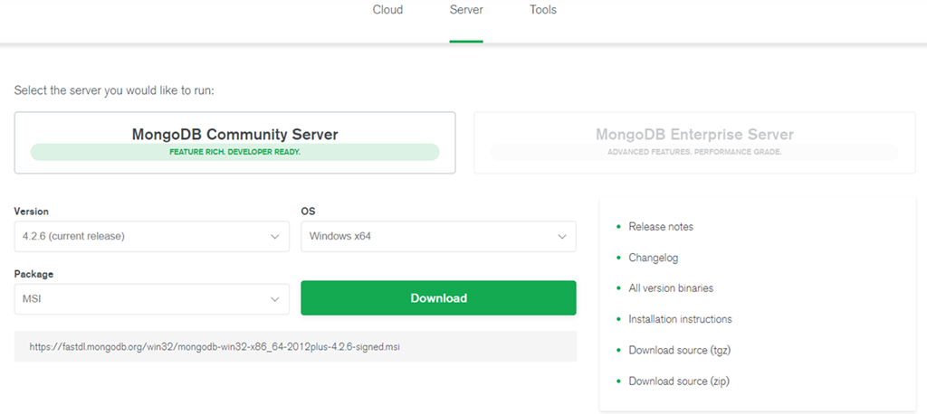 MongoDB 预编译二进制包下载地址:https://www.mongodb.com/download-center/community