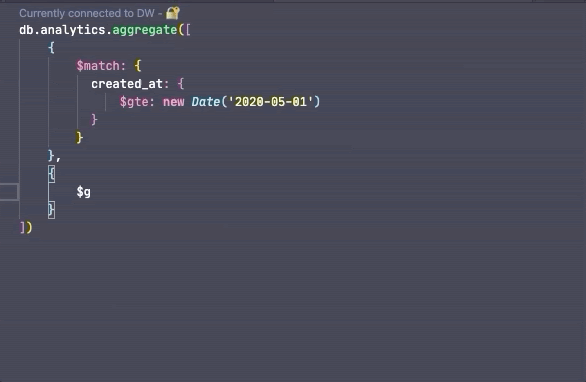 为了更容易,操练场包括针对MongoDB Shell API(例如,查找,聚合,toArray),MongoDB运算符以及数据库,集合和字段名称的语法突出显示和智能自动完成功能。