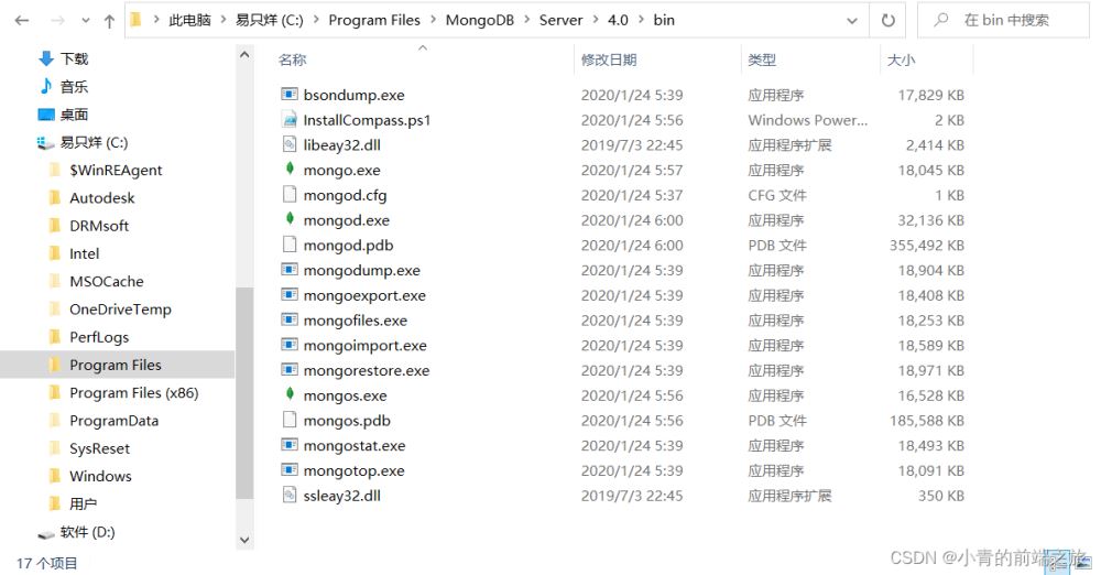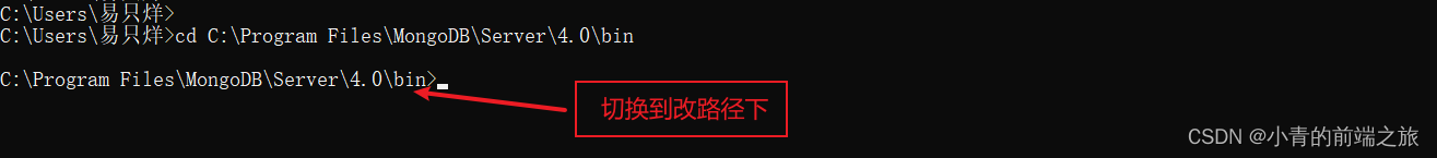 1. 启动cmd,切换路径到C:\Program Files\MongoDB\Server\4.0\bin