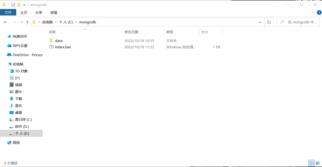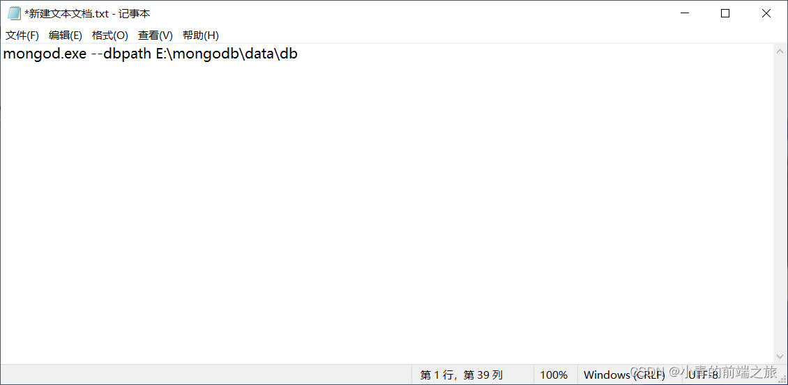 这样做的目的是为了,不用每次切换路径输入命令,启动MongoDB,要使用的时候双击运行我们创建的.bat后缀名的文件即可