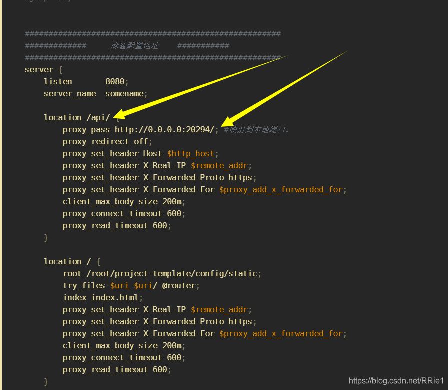 proxy_pass http://0.0.0.0:20294/; #映射到本地端口。