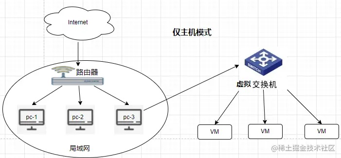 虚拟机只能够与主机进行连接,即只能与主机共享一个专用网络,无法与外部网络通信。