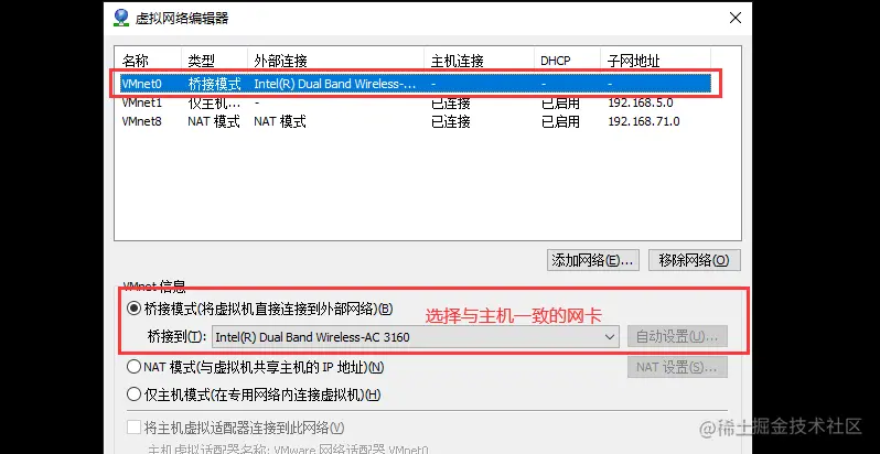 由于桥接模式是要占用主机所在网络的ip地址的,因此配置的ip,子网都需要与主机的ip在同一个局域网。
