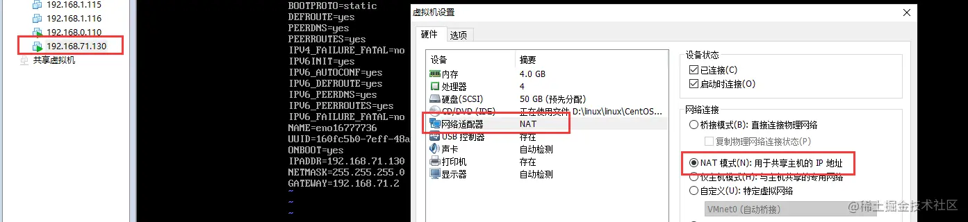 2、虚拟机安装的系统网络适配器设置为NAT模式