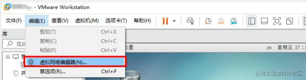 1、在虚拟机编辑菜单中,选择【虚拟网络编辑器】,将其网络模式选择桥接模式,并选择对应的主机网卡。