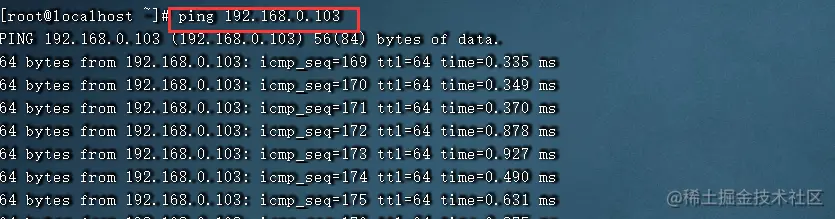 以上未出现丢包信息,说明主机能够正常ping通安装的linux系统