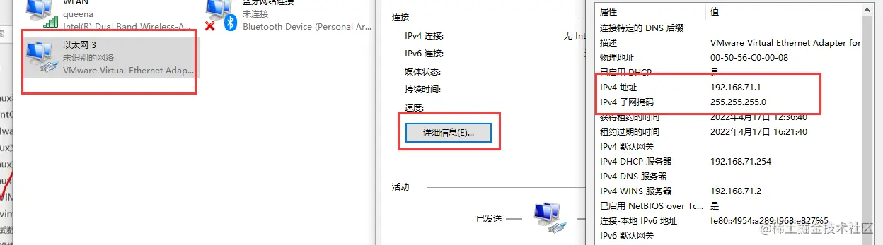 3、查看主机中虚拟的网卡信息,例如我这边虚拟的是以太网3: