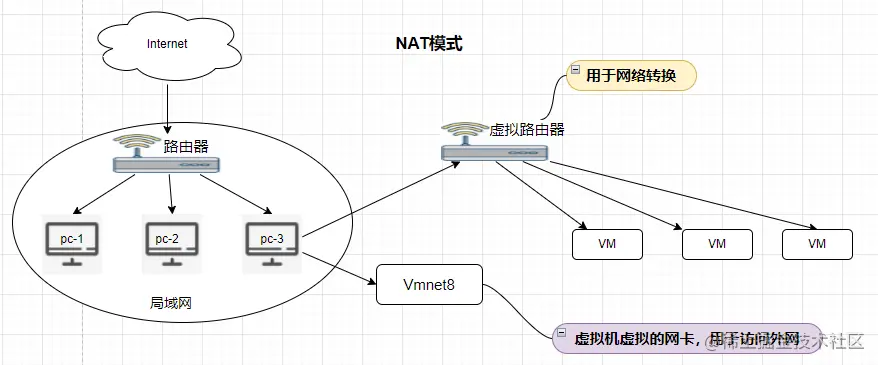 虚拟机共享主机IP来访问外部网络,但外部网络无法访问虚拟机。