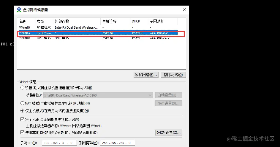 1、在虚拟机编辑菜单中,选择【虚拟网络编辑器】,将其网络模式选择【仅主机模式】,查看对应的子网IP,子网掩码等。