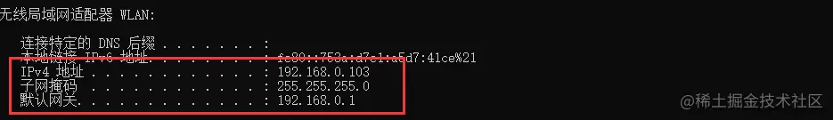 例如:windows中win+R,cmd进入命令操作符界面,输入ipconfig进行查看