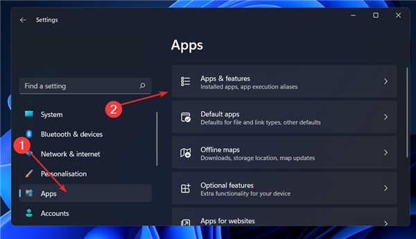 3、要确保应用程序不在后台运行,请返回Settings,然后是Apps,最后是Apps & features。