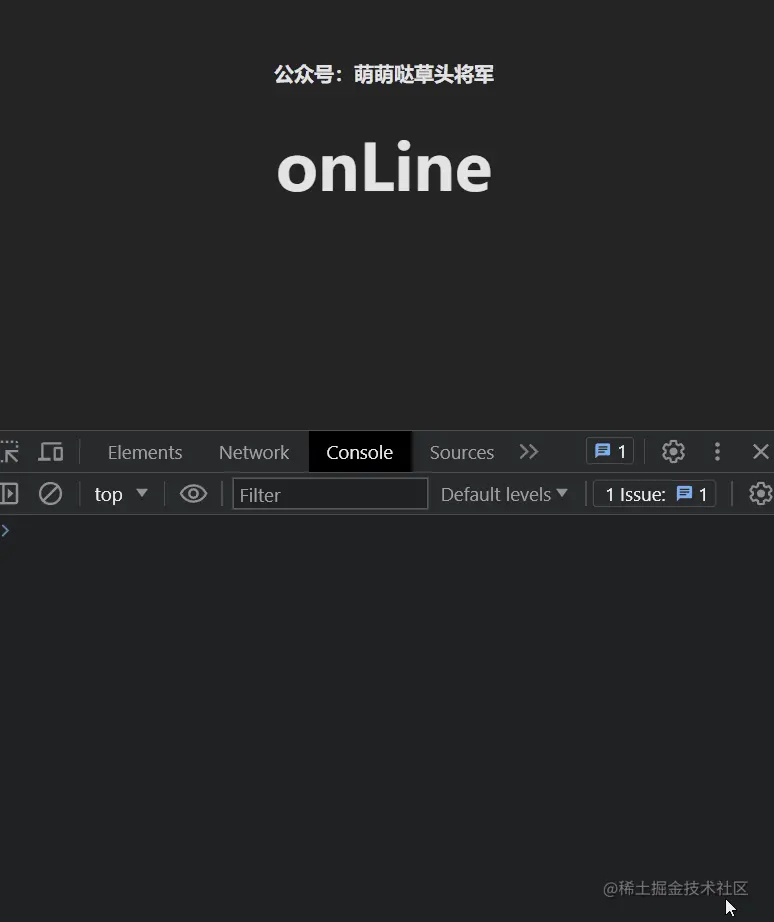 const isOnLine = useNetWork() watchEffect(() => console.log(isOnLine.value, 'isOnLine')) <h1 v-if="isOnLine">onLine</h1> <h1 v-else>offLine</h1>