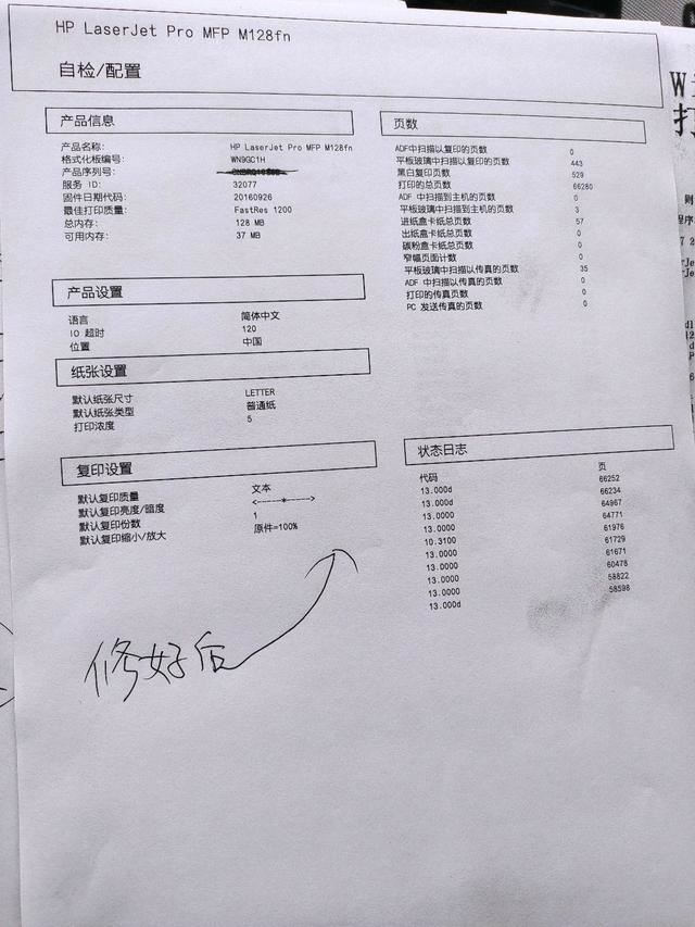 惠普128nf打印故障现象