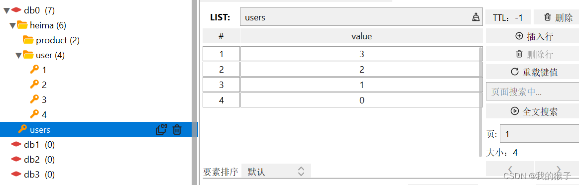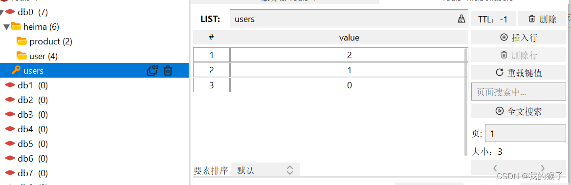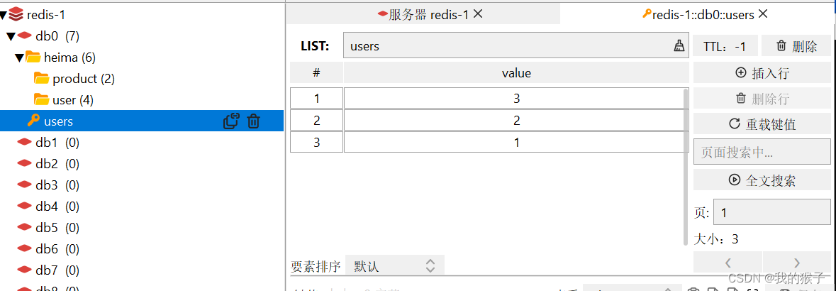 (2)在图形工具查看数据(我们可以看到,在图形化界面的里面是是倒叙的,这是因为我们使用了头插法)