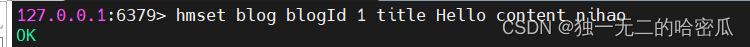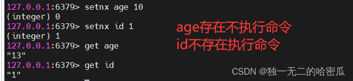 | HSETNX [key] [field] [value] | 添加一个hash类型的key的field的值, 如果存在就不执行 |