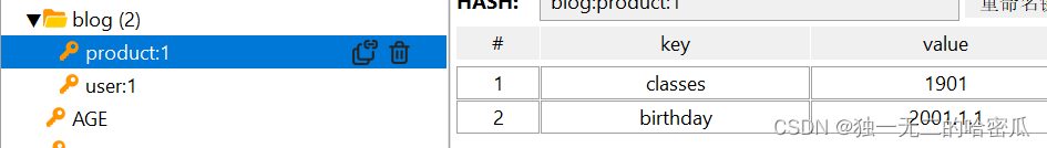 注: Redis 的key允许有多个单词形成层级结构, 多个单词之间用:隔开, 例如 blog:user:1