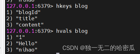 | HKEYS [key] | 获取一个hash类型的key中所有的field |
